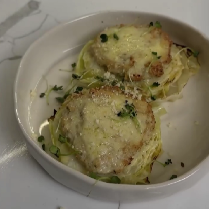Для рецепта старайтесь выбирать капусту поменьше, помоложе. Пекинская капуста также хорошо подойдет для этого блюда. Если капуста очень взрослая, с толстыми листьями, то нарезайте стейки потоньше, чтобы пропеклась.